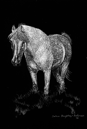 Selena Daughtrey-Andersen, a native Virginian, has been a resident of Huntingtown, Maryland, for 21 years. She is a life-long animal lover, with a strong affinity for horses. Selena graduated from Virginia Tech in 1980 with a degree in Animal Science, and worked in the Veterinarian and Equine industry prior to starting a successful pet sitting business in 1986, in Huntsville, Alabama. Moving closer to her Virginia home, she purchased a small farm in Calvert County in 1989 and began developing it into a multi-faceted animal care business. In 2001, Selena incorporated the many aspects of her operation under the name "Canaan Farms" and continues to develop and cultivate the business. She is an accomplished rider and riding instructor, having been certified as a Level II instructor. She teaches both Western and English and enjoys bringing the world of horses to children of all ages. Adding to her diverse background and free spirit, Selena is an athlete (runner, racquetball player, body builder), and an artist specializing in collagraphs, watercolor, etchings and other various media. She is a founding member of "Art Works at 7th", an award winning art gallery located in North Beach. Selena enjoys all aspects of her business, art, and athletics, but is a simple farm girl at heart. Her first love has always been animals and nature and being in touch with all of God's creation. Bleeding Heart a photo by